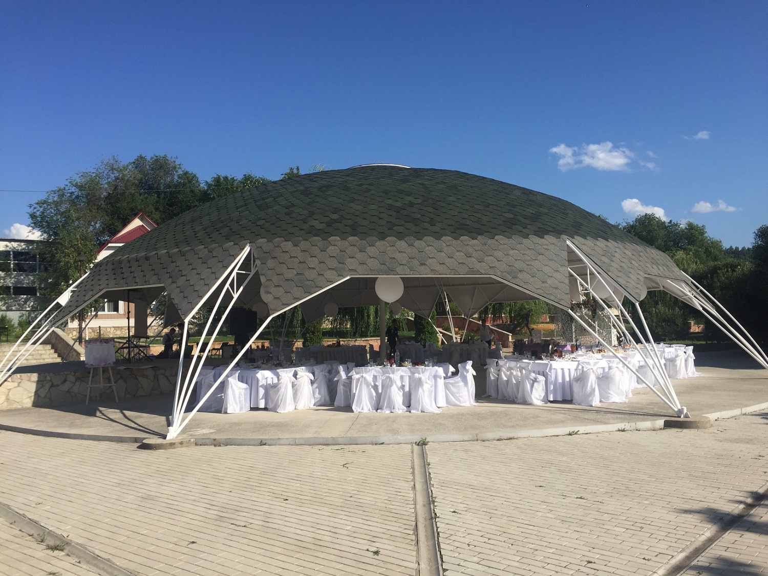Инфраструктура: уютное кафе, свадебный шатер для проведения свадеб на 120 чел., банкетные залы на 25 и 100 чел., беседка на берегу, оборудованная переговорная комната, учебный класс, кинозал на 100 посадочных мест, русская баня, бильярд, детские и спортивные площадки, отличная площадка для пляжного волейбола, в зимнее время - каток.